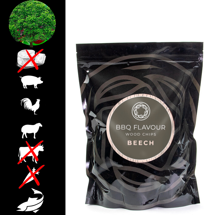 L’affumicatura di faggio dà un sapore di fumo neutro e colora i tuoi ingredienti da rosso a marrone. Il legno di faggio è ideale per affumicare anguille, maiale, salsicce e salmone.