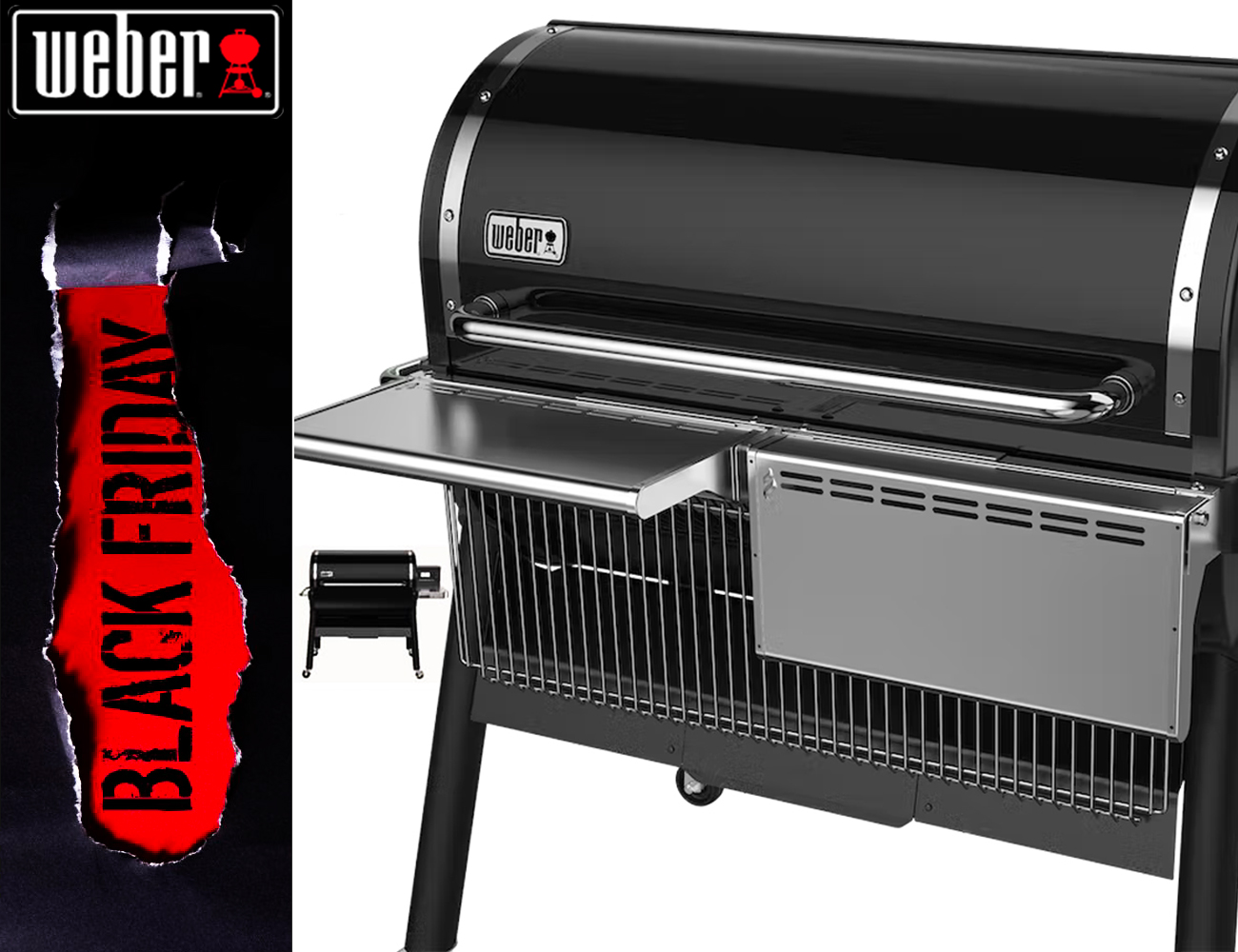 Ha una capacità massima di 9 kg per cibo e accessori per barbecue, inclusi utensili, piatti e taglieri. Le clip nella parte inferiore sono state specificamente progettate per magazzinare la griglia di cottura superiore quando non serve.
