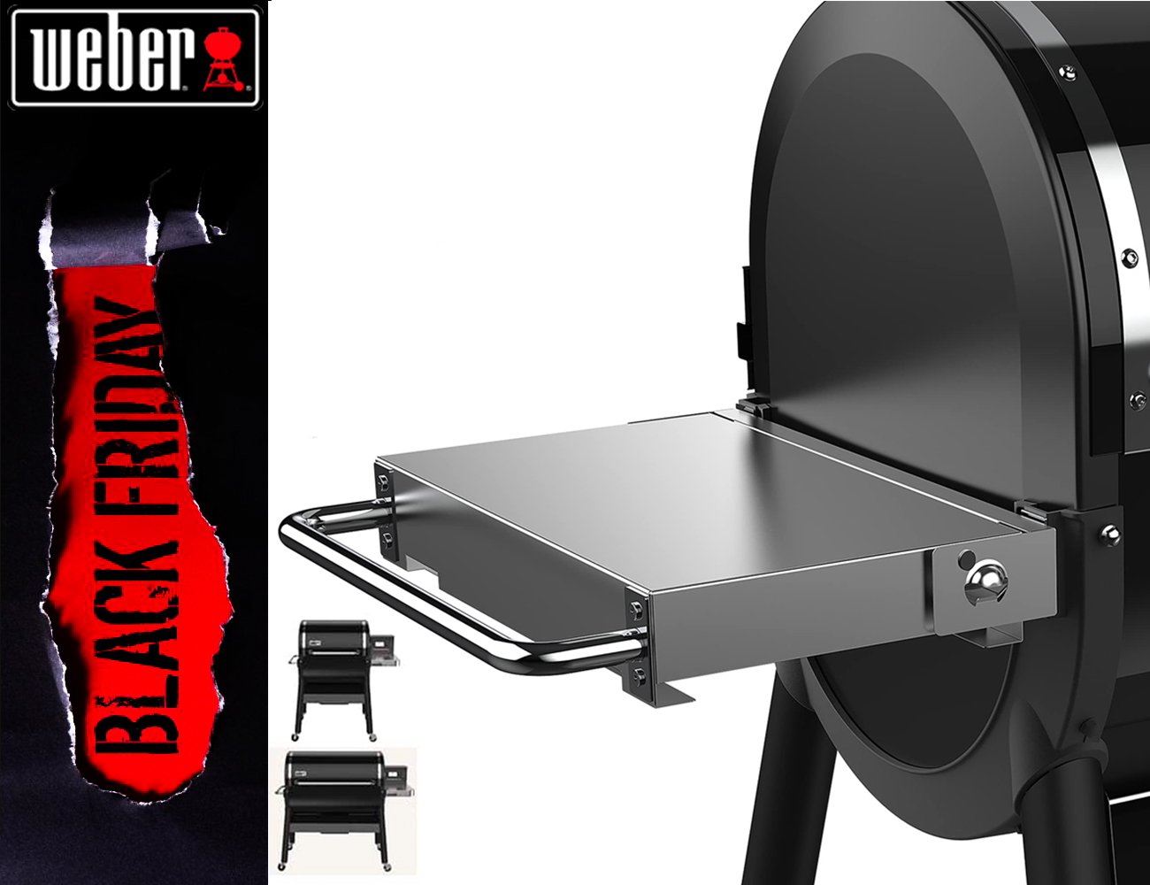 Prepara, servi e tieni a portata di mano gli utensili da cucina con il ripiano laterale ripiegabile in acciaio inox SmokeFire. Il ripiano laterale aggiunge spazio di lavoro ed è dotato di apribottiglie integrato.