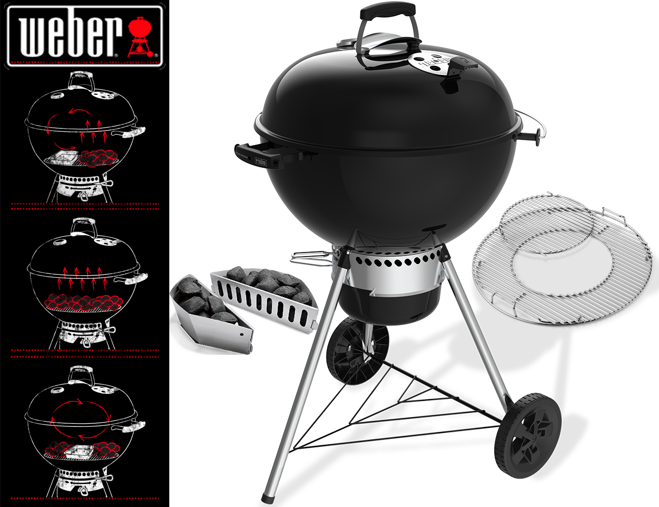 Con la vaschetta portacenere chiusa, la pratica maniglia del coperchio, la griglia di cottura GBS per tutti i tuoi esperimenti culinari e la staffetta di supporto per il termometro iGrill – è una garanzia per ritrovare l’autenticità del barbecue a carbone.
