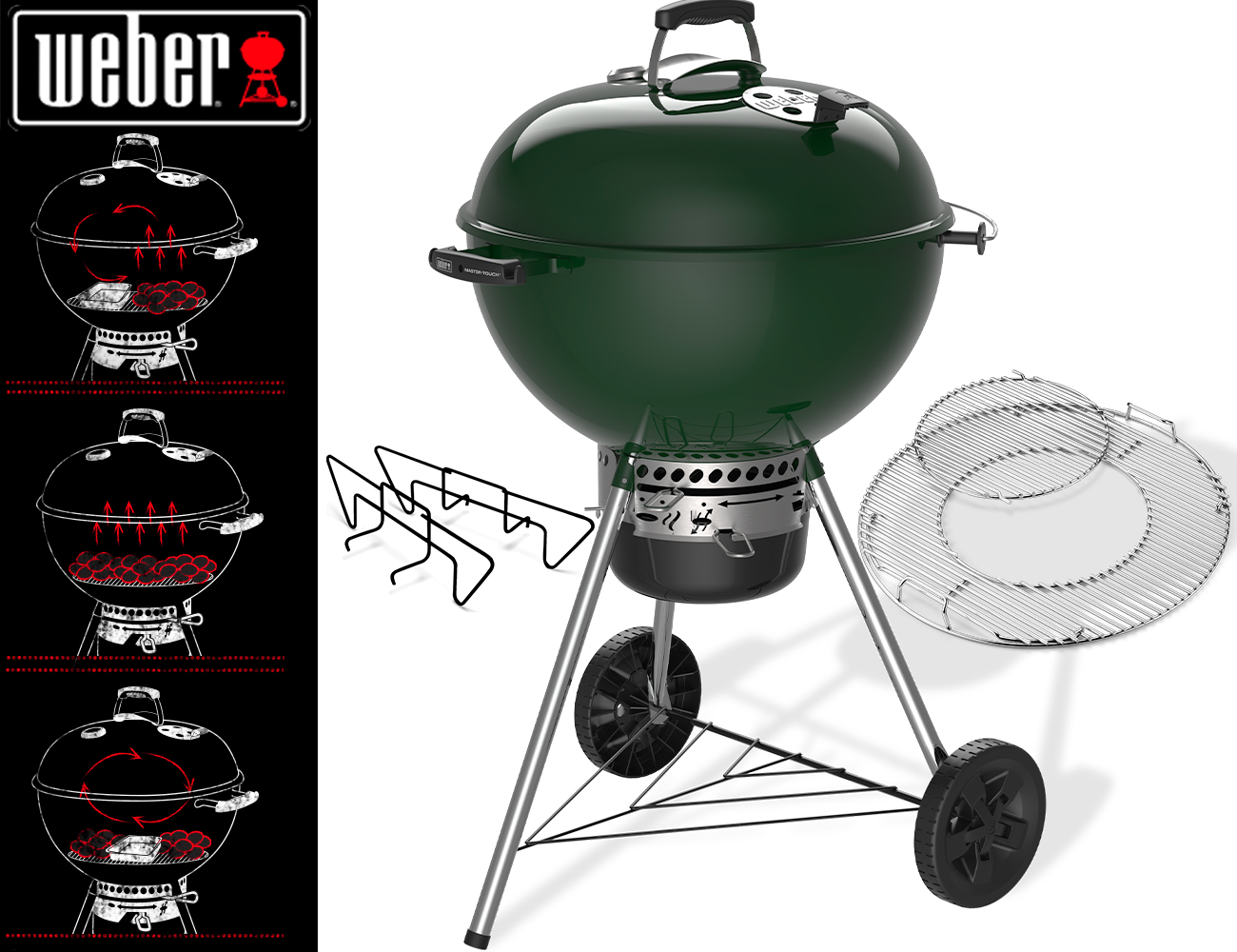 Lusso e creatività vanno a braccetto in questo leggendario barbecue a carbone da 57 cm. Con la vaschetta portacenere chiusa, la pratica maniglia del coperchio e la griglia di cottura GBS per tutti i tuoi esperimenti culinari – è una garanzia per